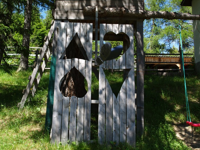 Spielplatz & BauerngolfUnser Bauerngolf-Platz befindet sich direkt oberhalb unseres Apartment Hauses, auf einer Almwiese, auf der sich auch ein großes Trampolin mit Netz, ein Baumhaus, ein Lagerfeuerplatz, ein Sonnenplatz mit Liegen, eine Babyschaukel und eine Schaukel für größere Kinder befinden. Diese Erholungs- und Sportmöglichkeiten sind idyllisch in die Landschaft eingebaut, mit einem herrlichen Ausblick auf die umliegenden Berge. Natur pur! Bauerngolf ist ein Geschicklichkeits - Parcour, der mit Gummistiefeln gespielt wird. Keine Angst, Sie müssen damit nur werfen. RegelnManhat 6 Treff - Versuche. Bei dem Treffer den man erzielt, wird die Zahl aufgeschrieben. Z.B. Ich treffe beim 3. Mal; werden 3 Punkte geschrieben. Haben Sie leider auch beim 6. Mal nicht getroffen, so müssen Sie leider 7 Punkte schreiben. Am Ende werden alle Punkte zusammen gezählt und derjenige, der am wenigsten Punkte erreicht hat, gewinnt.